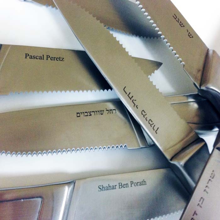 לפניכם חריטה והקדשה על סוגים שונים של סכינים שביצענו.